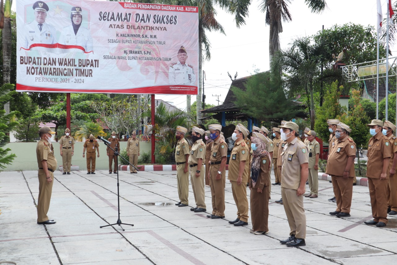Badan Pendapatan Daerah (Bapenda) Kab. Kotim menggelar Apel pagi sesuai instruksi Bupati, Senin (22/03/2021).