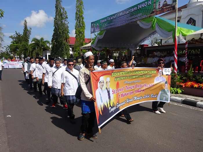 Sampit - Dalam rangka menyambut dan memeriahkan Tahun Baru Hijriyah (Tahun Baru Islam) 1 Muharram 1440H PHBI Kabupaten Kotawaringin Timur menyelenggarakan Pawai Taaruf yang diikuti oleh para pelajar, mahasiswa, SOPD dan ormas di Kabupaten Kotawaringin Timur, Senin (10/9/2018).